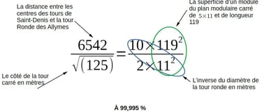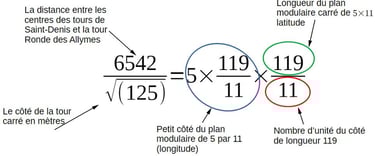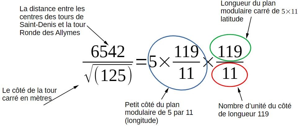 Mais alors, si le tissu du plan modulaire carré peut être mis avec grande précision en fonction de la tour carrée, de la configuration entre tour de Saint-Denis et Château des Allymes et de la cartographie absolue....ne peut on pas écrire l'ensemble de l'architecture et de la cartographie du site en une équation?