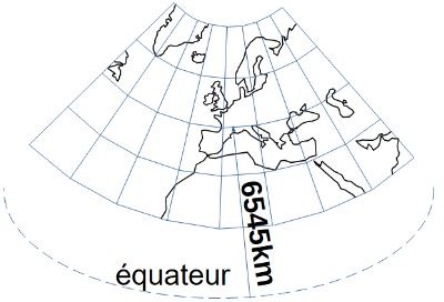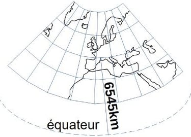 Une latitude de 6545km nord du château des Allymes en projection plane;