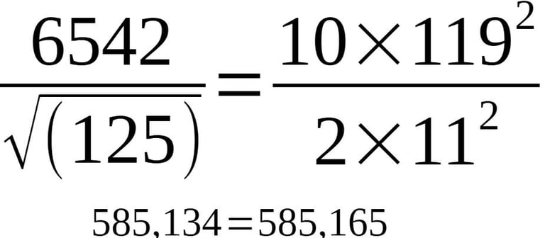 Mais ce que l'on a pu découvrir, c'est que tous les nombres précédents sont liés. Et si je divise 6542 qui est générateur de l'espace par le côté de la tour carré, nous avons avec précision le 117 qui revient: