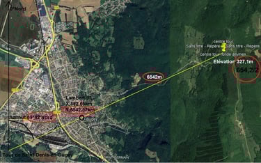 Au tiers point de la distance de 6542m entre la tour de Saint-Denis et le château des Allymes, se trouve la coordonnée Nord en projection conique conforme de Lambert-93 exigée en 2000 par décret. Je n'ai pas de smiley pour décrire la situation...... mais explosion de rires quand même.