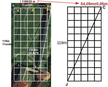 D'abord, posons nous la question de la précision. Dans le cas le plus défavorable, je constate ±2 sur le 4ème digit (4ème chiffre significatif), et ceci est un grand maximum. Quiconque mesurera de centre de tour (au sol) à centre de tour (au sol) pourra le vérifier. Gardons donc les 3 premiers chiffres significatifs pour chaque nombre, puisque l'on a un intervalle de 6540 à 6544.