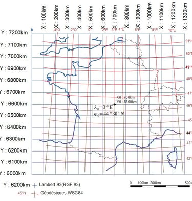 Alors où est le problème? 700 ans avant d'avoir été imposé par un décret, le Lambert-93 est là dans les châteaux et au tiers-point exactement et en plus en mètres…