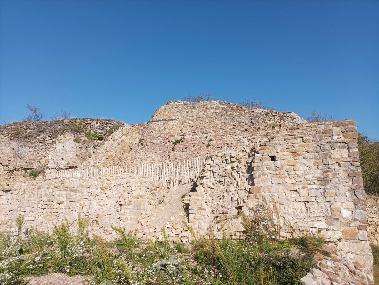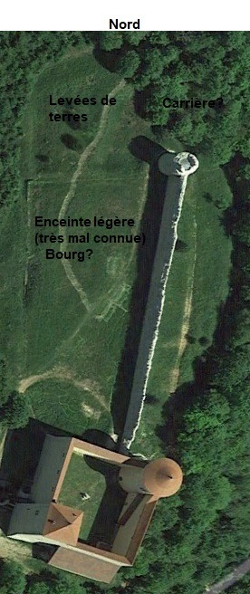 Une enceinte "lourde" complémentaire fait 100m en direction du nord et se finit par une tour ronde. Une enceinte plus légère de mur d'épaisseur 90cm ferme cette partie là vers la bâtie en une cour assez mal connue actuellement.