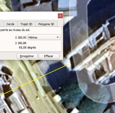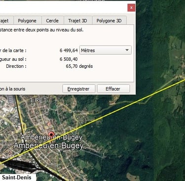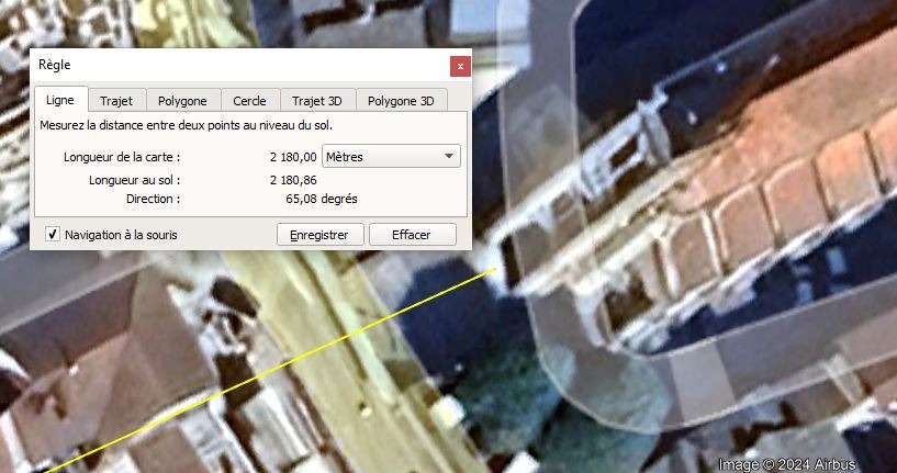 La longueur de la carte correspond à la distance entre les deux points directement, mais sur le plan de la carte de Google Earth pro.