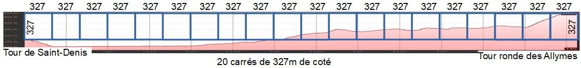 La différence d'altitudes tour Saint-Denis / Tour ronde des Allymes = 3 × 109