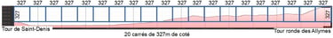 La distance tour Saint-Denis / Tour ronde des Allymes = 60 × 357.72